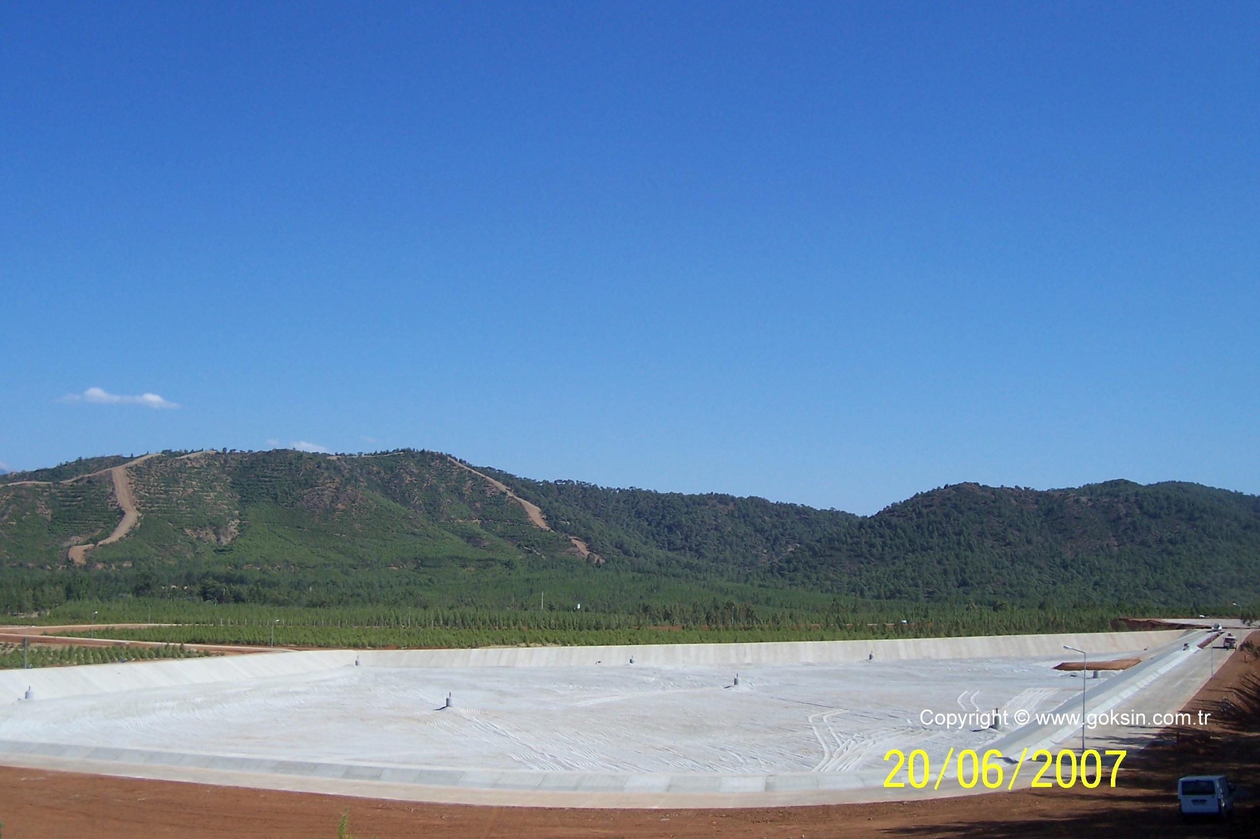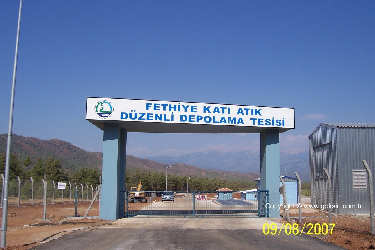 Under the job for Fethiye Solid Waste Regular Storage Facility Civil Works for which a contract was concluded with the Ministry of Environment and Forestry Special Environmental Protection Authority at the start of 2007, the following items of Works have been successfully carried out at the facility having a solid waste on the site area and also accommodating facility buildings, domestic waste lot, leach water pool: in this regard excavation and filling works, laying geosynthetic clay cover and laying geo-membrane and geotextile, laying 16/32 bedding materials and 32–64 and 0–64 mm road base and sub-base material, supply and installation of Ø110 mm 1,600 m of HDPE pipes, supply and installation of fire water piping and hydrants, supply and installation of electrical and mechanical accessories and supply of weighbridge, a generator and laboratory analysis devices.