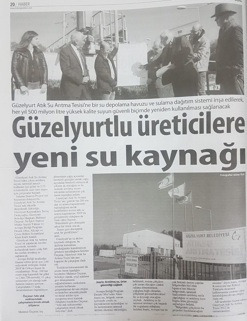 EU-funded irrigation system In order to reuse the wastewater treated in Güzelyurt Wastewater Treatment Plant, initialisation activity have been made.