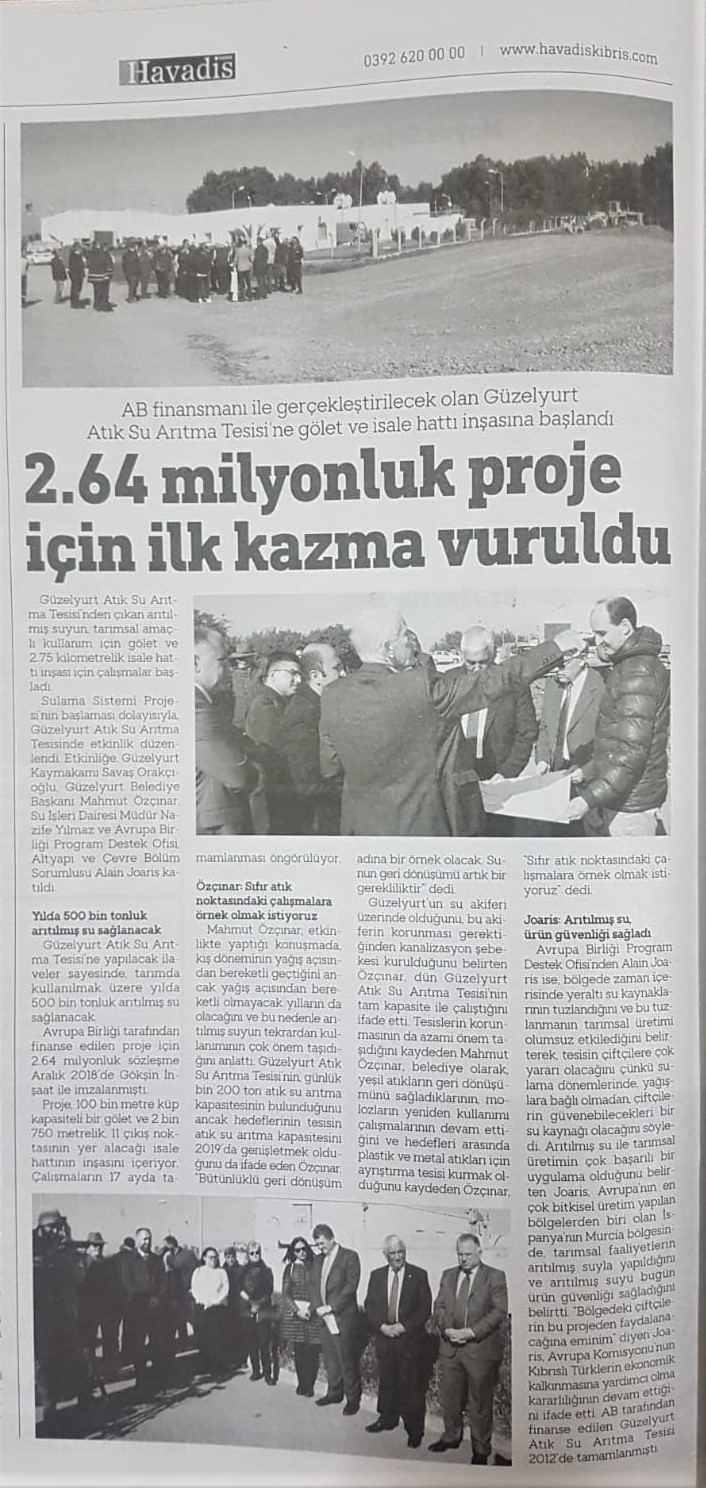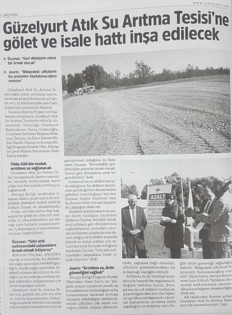 EU-funded irrigation system In order to reuse the wastewater treated in Güzelyurt Wastewater Treatment Plant, initialisation activity have been made.
