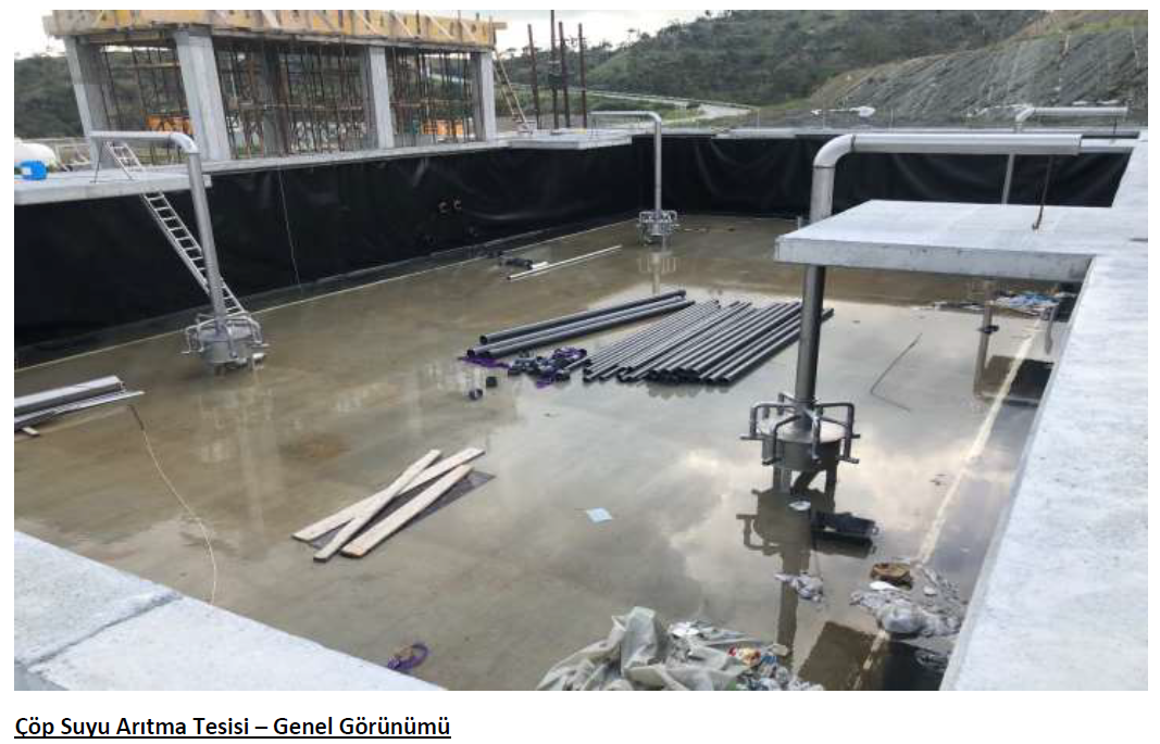 Кроме того, завершена сборка системы рециркуляции установки для мойки колес и соответствующих очистных сооружений, работы по прокладке габионных стен и грунта, выполненные в рамках работ по обеспечению стабильности на юге, строительство испарительного бассейна для выщелачивания, изготовление системы отвода дождевой воды вокруг административных зданий, механические монтажные работы, связанные с установкой для сжигания газа. Производства, связанные с другими предметами в рамках проекта, продолжаются.