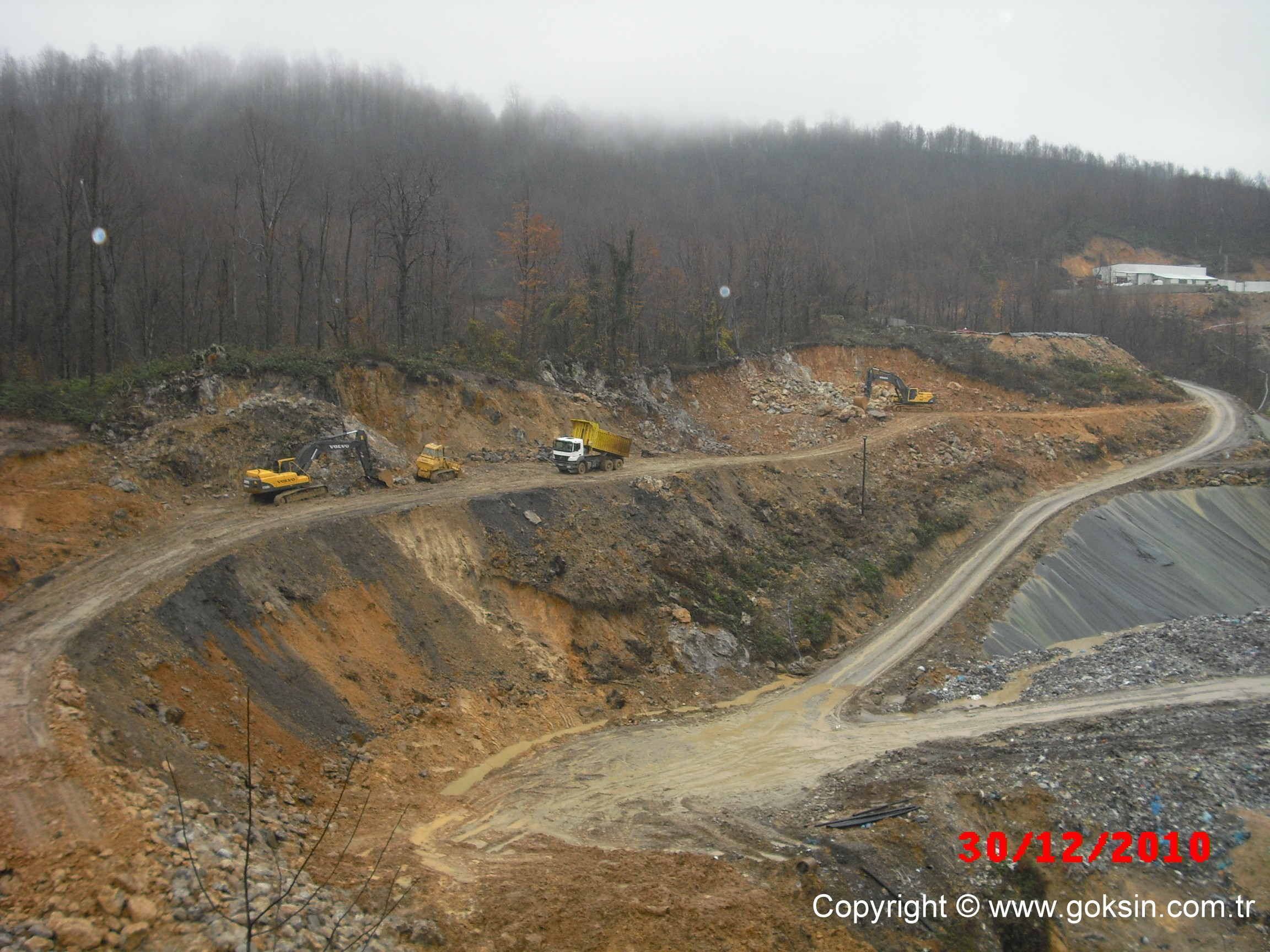 Düzenli depolama sahasında km 0+00 ile 0 + 510 arasında anroşman taş ve toprak dolgu, serilmesi, sulanması ve sıkıştırması işleri tamamlanmıştır. DN 500 mm HDPE yağmursuyu hattı döşenmiştir. Km 0+00 ile 0+330 arası geotekstil + jeomembran + geotekstil izolasyon tabakaları ile kaplanmıştır.